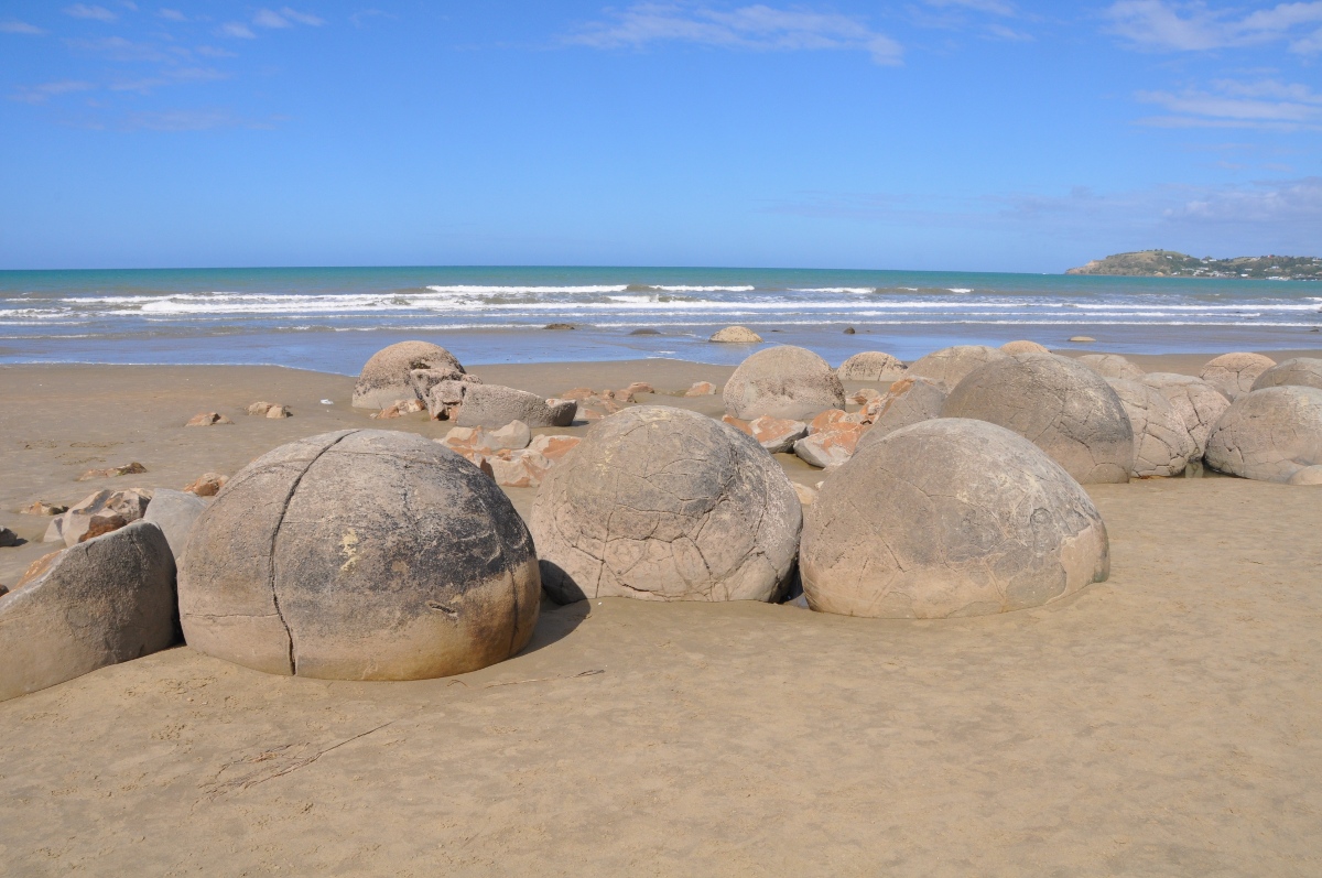 Etwas weiter nördlich fuhren wir an den bekannten Moeraki Boulder’s vorbei. Die kugelförmige Steine entstanden durch Diffusion des Calciums, welches aus dem Porenwasser… ach, bitte lest doch selber auf Wikipedia nach ;-). Da wir noch einige hundert Kilometer vor uns hatten hiess es bald wieder zurück auf die Strasse Richtung Christchurch.