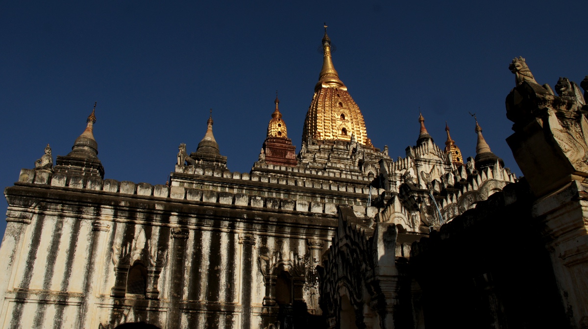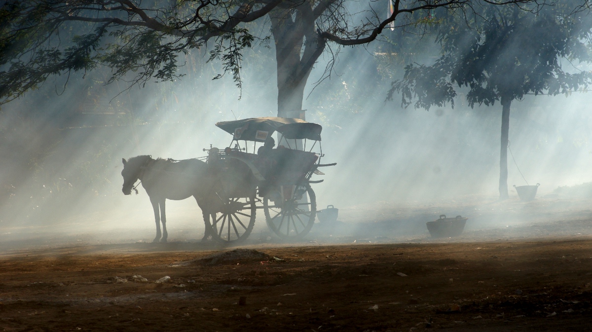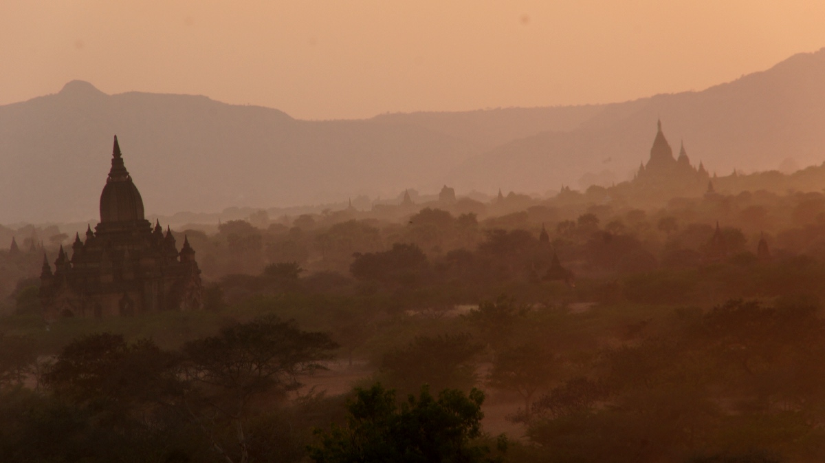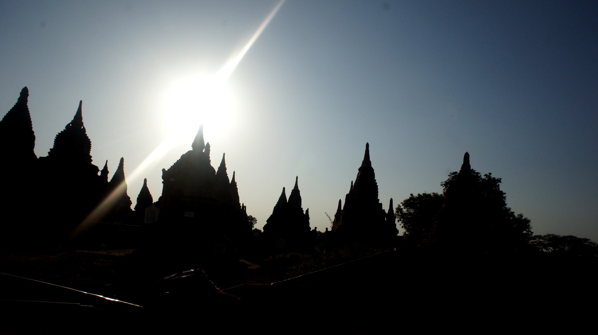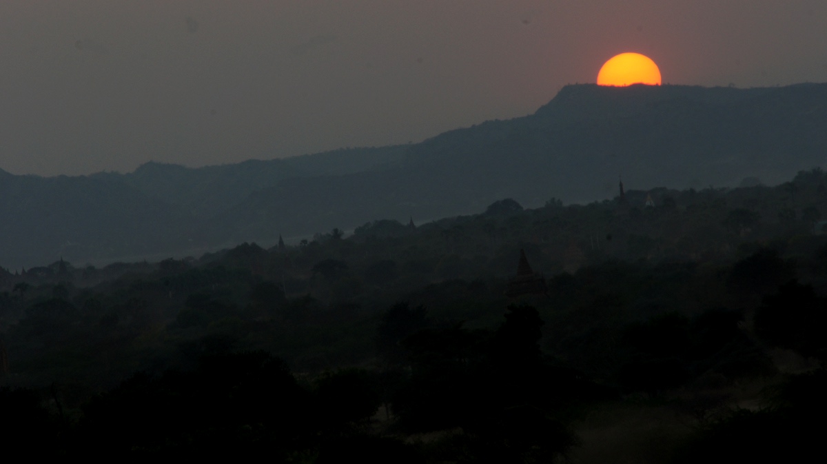 Schon aus der Luft sind viele kleine Backsteintempel auf Bagans Ebene erkennbar. 4400 Heiligtümer sind es gesamthaft. Eine Handvoll schauen wir von innen an. Auf unseren Wunsch machen wir am Nachmittag eine Fahrt mit der Pferdekutsche. Das Gefährt ist ganz schön heruntergekommen und gleicht einer Kutsche aus dem Wilden Westen. Aber die Tour abseits der Strassen auf sandigen Trampelpfaden ist traumhaft. Auf einem der Tempel betrachten wir dann den Sonnenuntergang zusammen mit geschätzten anderen 300 Touris. Trotzdem war es ein schönes Erlebnis. Der erste Reisebus fuhr übrigens bereits vor dem Sonnenuntergang wieder ab.