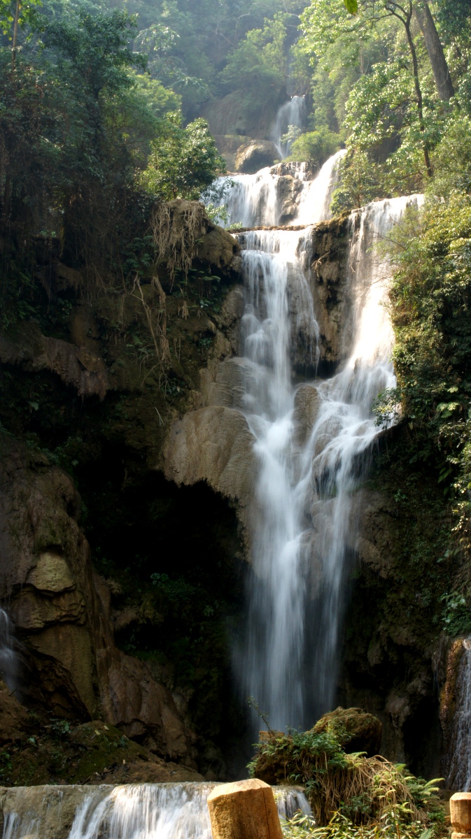 An unserem letzen Tag in Luang Prabang machen wir einen Ausflug zum wunderschönen Kuang Si Wassserfall (30 Kilometer entfernt, Fahrtdauer 45 Minuten mit dem Minibus). Die Asiatischen Schwarzbären und Sunbears im Bear Rescue Center sind putzig. Auf der Suche nach ihrem Futter turnen sie im Gehege umher. Beim Spaziergang entlang den Wasserfällen gefallen uns auch die vielen bunten Schmetterlinge (Flügelspannweite ca. 10 cm). Die Wasserfälle sind für Roli ein begehrtes Fotosujet und Andrea muss deshalb etwas Wartezeit in Kauf nehmen.