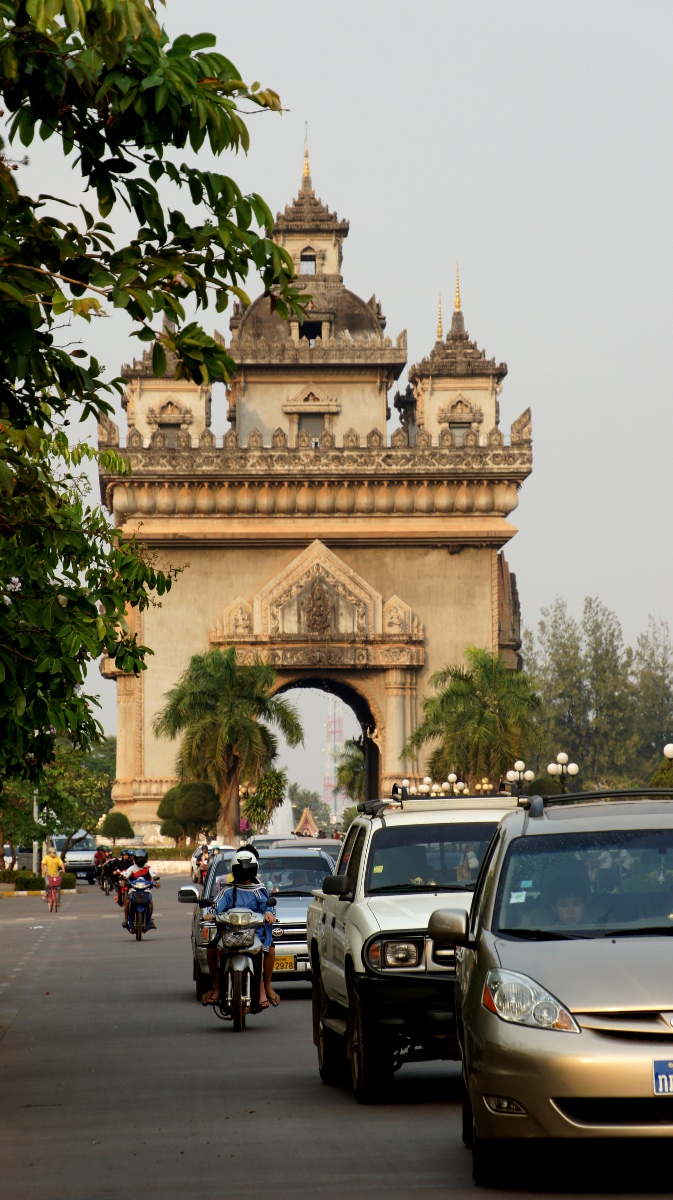 Laos gilt als das am meisten verbomte Land. Während dem Vietnam Krieg haben die US Truppen über 3 Millionen Tonnen Sprengkörber auf Laos herabregnen lassen. Jedes Jahr verletzen sich hier über 100 Personen an Blindgängern. Vor allem viele Bauern und deren Kinder gehören zu den Opfern. In der Hauptstadt Vientiane besuchen wir das Cope Center in welchem Protesen und Rollstühle hergestellt werden und Rehathrapie angeboten wird. Die Ausstellung beeindruckt uns sehr(www.copelaos.org). Auf dem Weg zurück zum Stadtzentrum kommen wir an verschiednen Tempeln vorbei und besuchen das Ho Phra Keo . In diesem Museum werden die nationalen Kunstschätze gezeigt. Jetzt brauchen wir dringend eine Pause. Am Mekongufer flanieren wir auf der breiten Fussgänger Promenade. Wo sind denn die kleinen Lokale die es hier gemäss Reiseführer gibt? Sie mussten wohl der Promenade weichen. Wir betrachten das Rinnsal das hinter den Sandbänken weit entfernt an uns vorbei fliesst. Wir stapfen die paar 100 Meter durch den Sand bis zum Wasser. Auch für laotische Jugendliche ist das ein beliebter Aufenthaltsort.