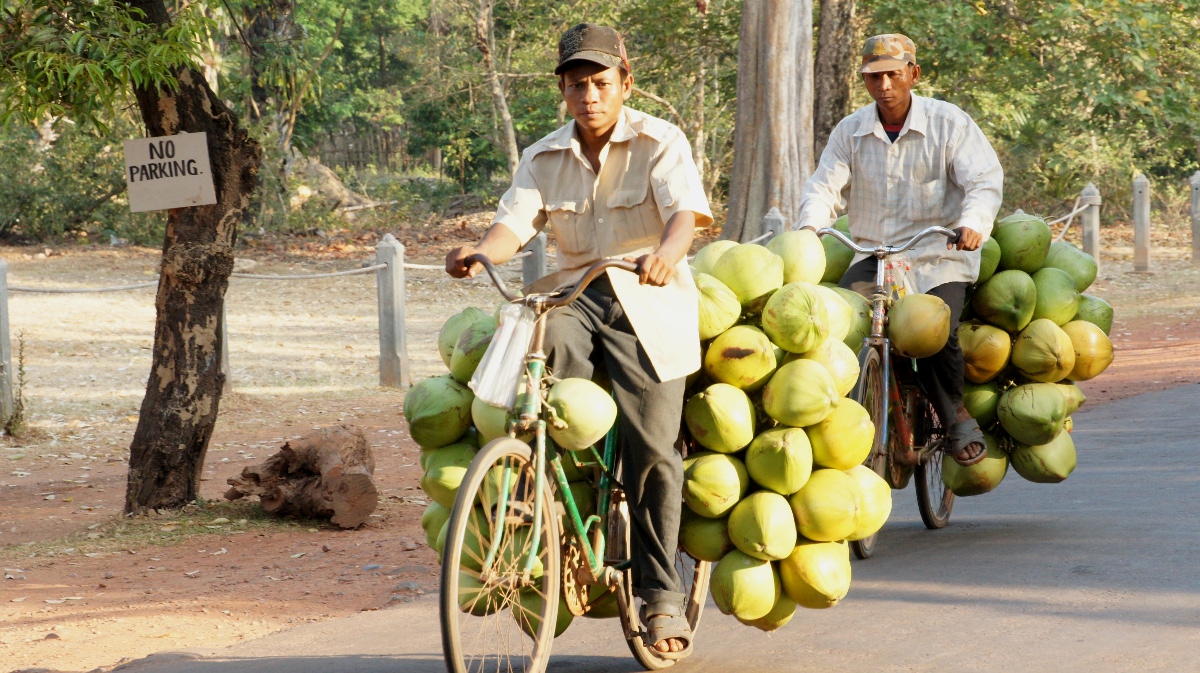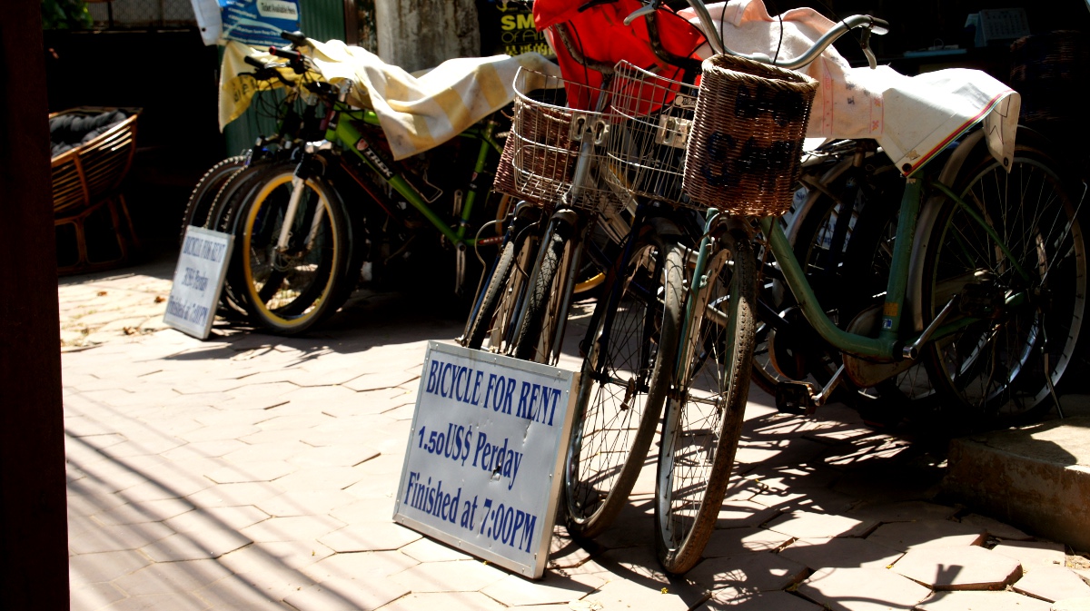 Früh um sechs pedalen wir mit geliehenen Velos zu den sagenumwobenen Tempeln im Dschungel. Mehrere Jahrhunderte lagen sie vergessen, das hat sich doch sehr geändert. Kurz ein Stopp beim offiziellen Ticketschalter und der Eintrittspass inkl. morgendlich-verschlafenem, verschwitzem Foto ist in unserem Besitz. Den kleinen Rundweg (ca. 17 Kilometer) haben wir uns vorgenommen. Die teils sehr weitläufigen Tempelanlagen beeindrucken uns sehr, so dass wir die zahllosen steilen Stufen auf die Tempelberge (fast) klaglos auf uns nehmen. Es ist schwer diese grandiosen Bauwerke in Worte zu fassen. Deshalb lassen wir wohl besser die Bilder sprechen. Ohne Panne mit dem Velo kehren wir gegen 17 Uhr zu unserem Hotel zurück und stürzen uns in den Pool.