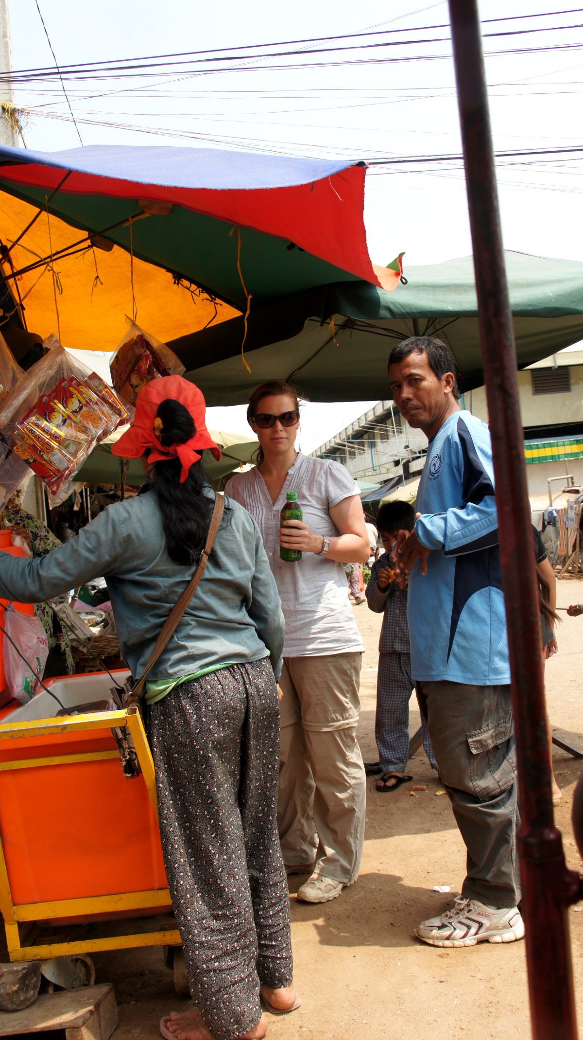 Die nächsten Tage sind wir in der Pampas – weit entfern von Souvenirshops und Touristenrestaurants. Wir ernten Blicke und Begrüssungen von allen Seiten, das kann einem schon gefallen. Wir amüsieren uns jedenfalls prächtig beim Spaziergang durch den Markt von Pursat. Da entdeckt uns plötzlich ein Túk Túk-Fahrer und wir werden gleich für die Zeit unseres Aufenthalts „adoptiert“. Eigentlich ist er ja mit seiner Frau und ihren unverkauften Marktwaren auf dem Nachhauseweg. Trotzdem fährt er uns zum Restaurant, das wir für unser Nachtessen ausgewählt haben.