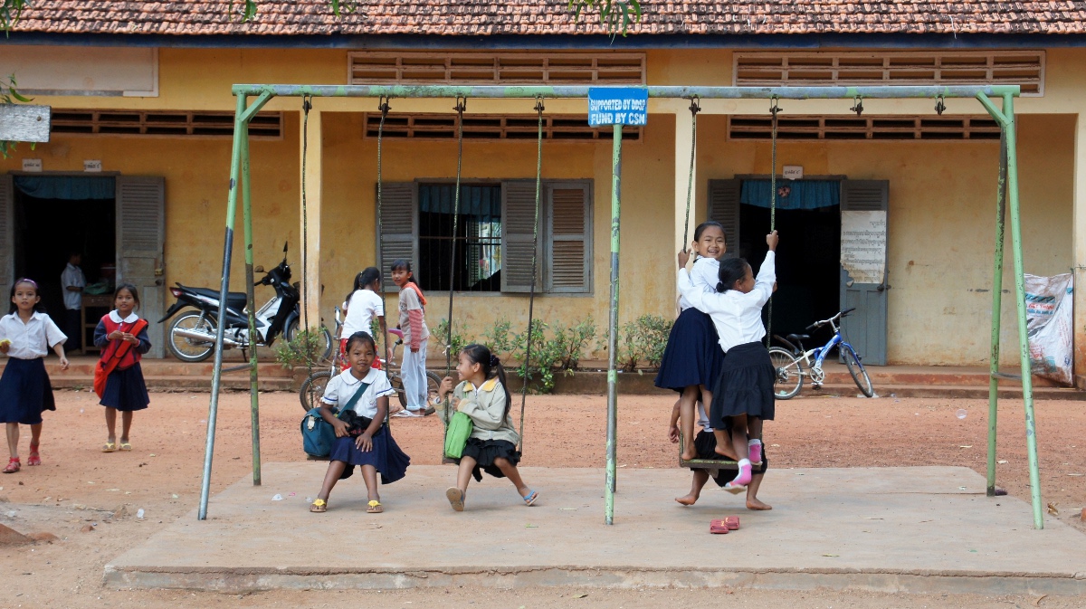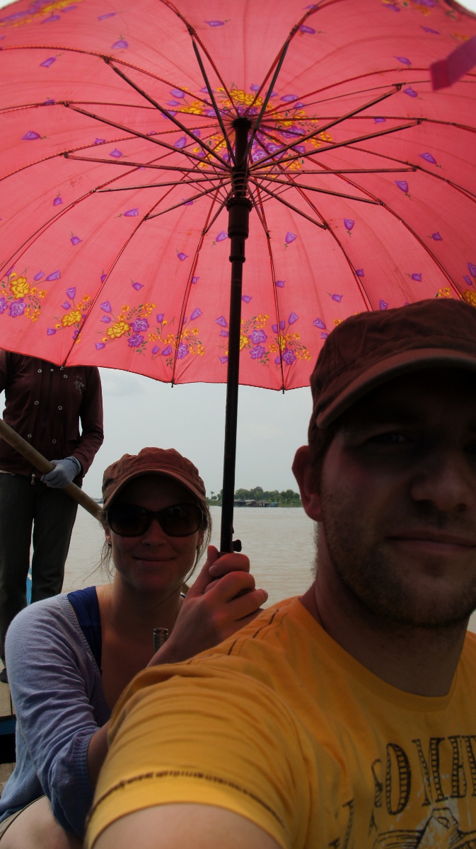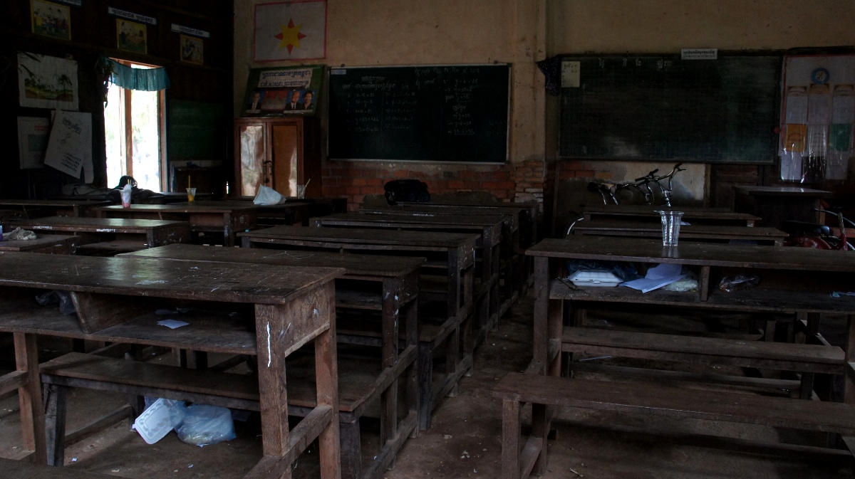 Bei einer Cola am Hafen quetscht Andrea Van Rath (unseren Túk Túk-Fahrer) über das kambodschanische Schulsystem aus. Die öffentliche Schule sei gratis (abgesehen von Schulbüchern, Schulmaterialien und Schmiergeld), aber der Unterricht unglaublich schlecht. Lehrer verdienten pro Monat 30$ und bräuchten deswegen auch einen Nebenjob. Van Rath würde seine Kinder am liebsten auf eine Privatschule schicken, damit sie trotzdem einen guten Abschluss schaffen. Leider kann er das nicht für alle Kinder finanzieren. Da zum Beginn des Nachmittags ein Gewitter aufzieht unterbrechen wir die Tour und machen eine Pause im Hotel, Van Rath ist nämlich schon vom Vortag etwas verschnupft. Uns kommt das auch entgegen. Etwas später besuchen wir eine Staumauer, welche von der Khmer Rouge erstellt wurde. Wir wagen uns nur mit Vorsicht über den Damm. Jugendliche fahren mit dem Velo in vollem Schuss über das mit vielen Löchern gespickte Bauwerk.