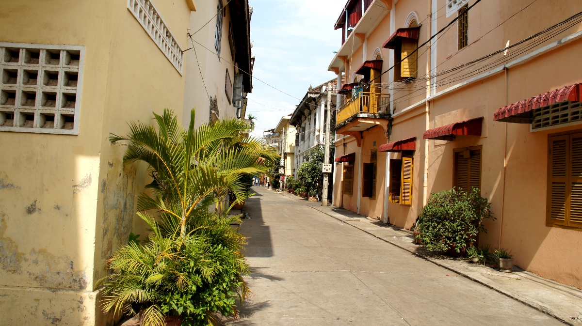 - wohl die einzige Gasse in Phnom Penh ohne geschäftigen Trubel