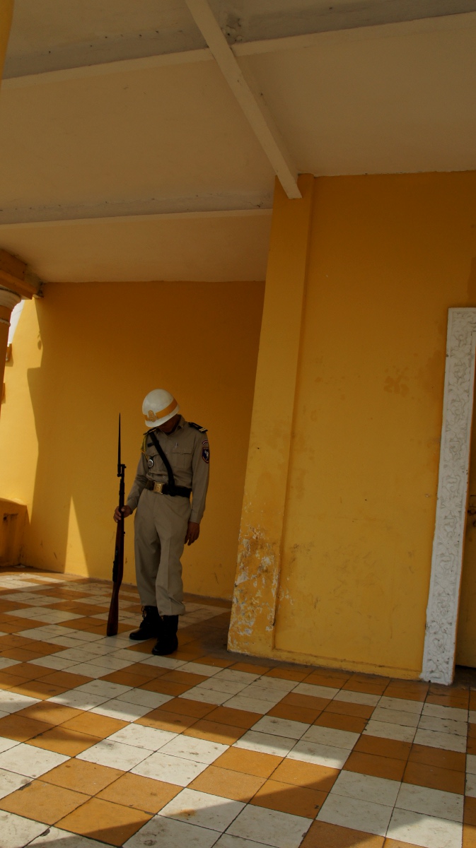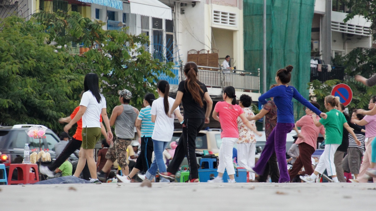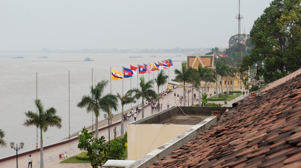 Die anderen Sehenswürdigkeiten Phnom Penhs sind bedeutend friedvoller und beruhigen unsere Gemüter. Uns gefallen das eher kleine, schöne Nationalmuseum und der Königspalast. Vor allem geniessen wir die Atmosphäre an der breiten Flusspromenade am späten Nachmittag. Aerobic-Gruppen, Jogger, spazierende Familien, Fussballer und Getränkeverkäufer begegnen uns in grosser Anzahl. Sie wirken zufrieden und fröhlich. Zwischendurch werden immer wieder Strassen gesperrt und Momente später fahren jeweils einige schwarze Pickups mit Polizeibegleitung durch. Während unserem Aufenthalt tagt die ASEAN (Association of Southeast Asian Nations).