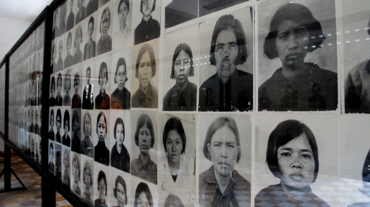 So besuchen wir die Killing Fields von Choeung Ek, wo mehrere tausend Menschen auf brutalste Weise hingerichtet und in Massengräber verscharrt wurden. Um Munition zu sparen hat man die meisten mit Hilfe einfacher Werkzeuge zu Tode geprügelt (Hammer, Hacken, Messer, Kinder wurden mit dem Kopf gegen Baumstämme gerammt). Etwa 8000 Skelette wurden ausgegraben und wissenschaftlich untersucht. Jetzt sind sie in einer Gedenk-Stupa zu besichtigen. Die anderen Körper lässt man in ihren Gräbern ruhen. Noch immer werden nach starken Regenfällen Zähne, Knochenfragmente und Kleidungsstücke an die Oberfläche gespült. Die Opfer waren politische Gefangene, die zuvor im „Sicherheitsgefängnis“ S21 festgehalten und gefoltert wurden. Auch dieses haben wir besucht. Auf dem Gelände und in den Gebäuden, die vor der Umwandlung in ein Gefängnis eine Schule beherbergt haben, herrscht zumeist bedrückend ruhige Stimmung. Von ausserhalb der Mauern dringen Motorengeräusche, Menschenstimmen und Lautsprechergebetsrufe auf das Gelände. Jeder Gefangene ist von den Khmer Rouge fotografiert worden. Diese Bilder sind in den ehemaligen Klassenzimmern ausgestellt. Die eindringlichen Blicke der Gefangenen lassen uns nicht mehr los. Es folgen mehr Zimmer, mehr Fotos – 15‘000 Menschen waren hier inhaftiert. Männer, Frauen, Kinder. Nur sieben Gefangene haben die Tortur überlebt. Unglaublich, dass noch immer viele Rote Khmer Machthaber in der kambodschanischen Regierung sitzen! Viele der Kriegsverbrecher sind bis heut nicht verurteilt worden.