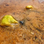 Früh am nächsten Morgen ging es dann zum Lower Geysir Basin, wo sich auch der bekannte „Old Faithful Geysir“ befand. Wieder hatten wir einen „Bison Jam“, trotzdem erreichten wir die Geysire noch vor sieben Uhr. Staunend betrachteten wir die dampfenden, stinkenden Bassins und sprundelnden Geysire. Bei einem Geysir wurde uns empfohlen auf den Ausbruch zu warten, denn dessen periodischer Ausbruch (etwa alle 12h) war bereits überfällig. Der Geysir zeigte aber noch keinen Willen zum Loslegen, allerdings sei auf der anderen Seite der „Grand Geysir“ kurz vor dem Ausbruch. Also begaben wir uns in schnellem Schritte auf die andere Seite des mit Holzsteg bebauten Gelände. Zwanzig Minuten später wurde unser Aufwand auch entschädigt: Mit Getöse und meterhohen Fontänen konnten wir den Ausbruch des „Grand Geysir“ bestaunen. Als sich der Geysir wieder schlafen legte, begaben wir uns zurück zum ersten Geysir, dem „Beehive Geysir“. Noch auf dem Weg hörten wir von dem vorher getroffenen, mit uns mitlaufenden Enthusiasten, das der Beehive kurz vor dem Ausbruch sei. Also rannten wir den Rest des Weges. Ausser puste mussten wir dennoch ca. eine viertel Stunde auf den Ausbruch warten. Der Geysir war jedoch noch eindrücklicher, das Wasser sprühte Meterhoch Richtung strahlend blauem Himmel.
