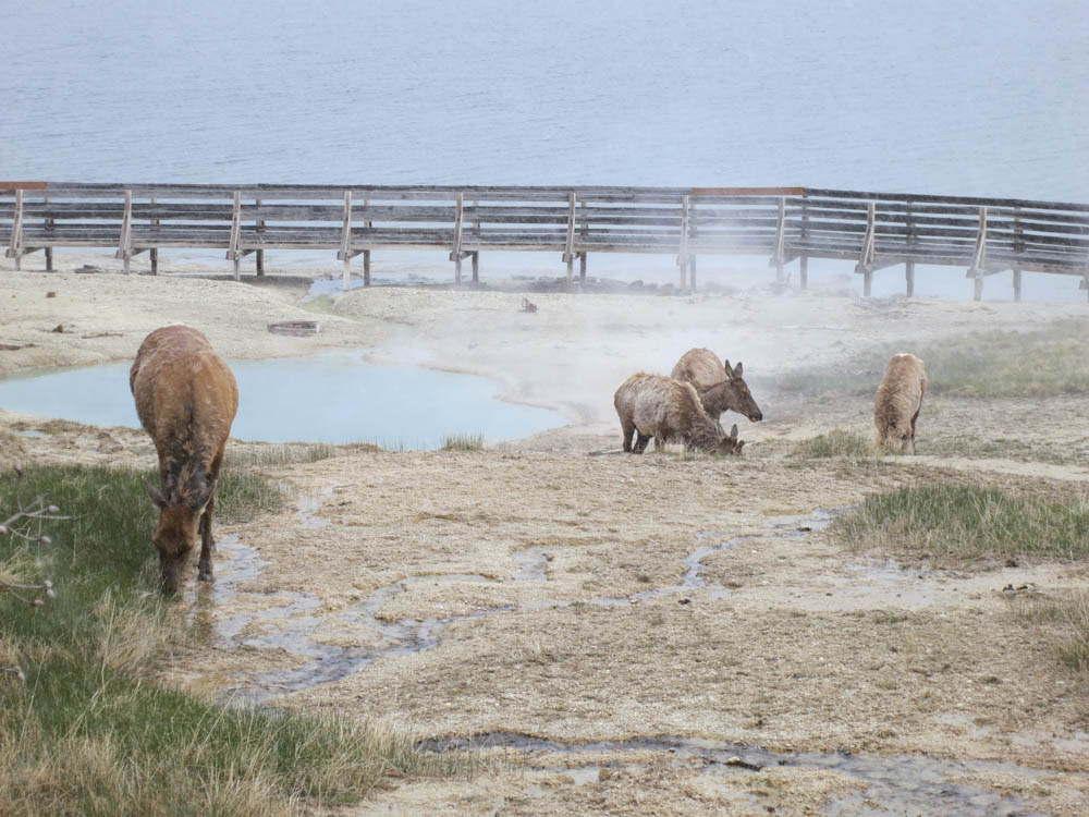 Leider waren die nächsten beiden Tagen vor allem vom schlechten Wetter geprägt. Neben Regen hatten wir mit Schneefällen, Hagel, Graupel und Gewitter etwa jeden erdenkliche Niederschlag. Gut geschützt in unserem RV nahmen wir die Zeit gelassen und hielten unsere Missionen in die Umwelt möglichst kurz. Der Mai ist witterungsmässig nicht die beste Zeit um den Yellowstone zu besuchen, dafür wurden wir mit viel Wildlife entschädigt: Obwohl uns einige eingeb… äh -heimische vor zu hohen Erwartungen warnten, sahen wir jede Menge Bären!